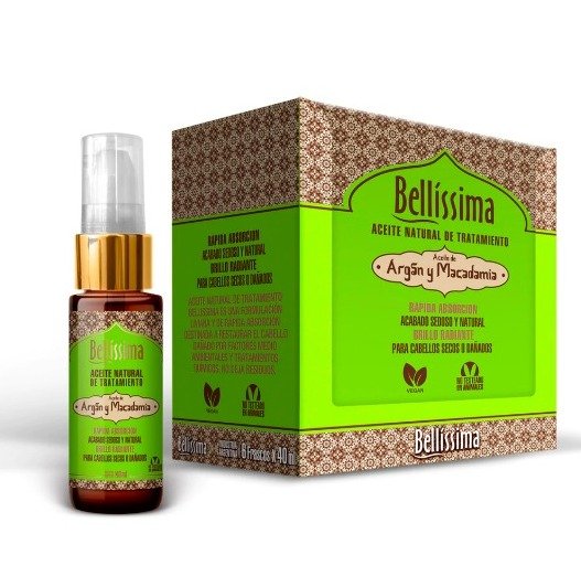 Aceite natural de tratamiento bellisima es una formulación liviana y de rápida absorción destinada a restaurar el cabello dañado por factores medioambientales y tratamientos químicos. No deja residuos.